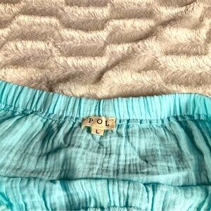 POL Size L Skirt Blue Stretchy Waist Gauze Textured Ruffle Hem Maxi Beachy NWOT