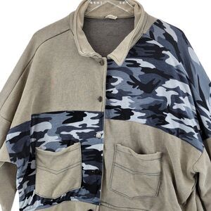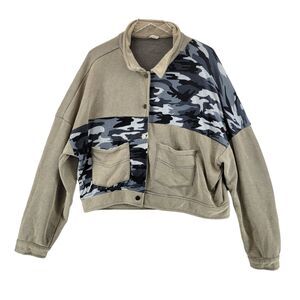 POL Slouchy Cropped Fleece Jacket Size Large Beige Black Gray Camo Colorblock