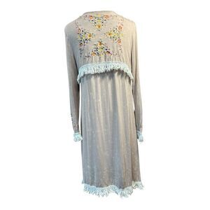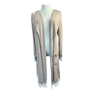 POL Small Western Peasant BOHO Embroidered Fringe Trim Duster Kimono Cardigan