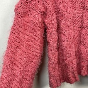 Elevate your sweater collection with this beautiful pink chunky knit sweater from POL. Crafted with a soft and textured pattern, this pullover sweater features a cozy turtleneck and a cropped fit that is perfect for layering or wearing alone. Designed for women, this sweater comes in size small and is made with high-quality materials for long-lasting wear. The brand, POL, is known for their unique designs and attention to detail, making this sweater a must-have for any fashion-forward wardrobe.
