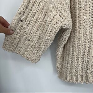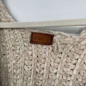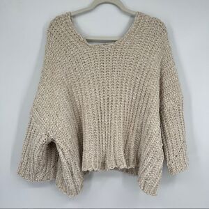 POL Soft Shaggy Grunge Chunky Chenille Oversized V-neck Popover In Beige