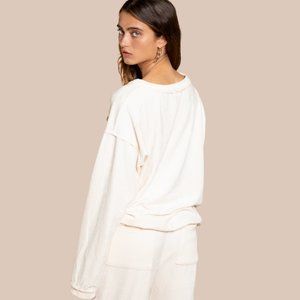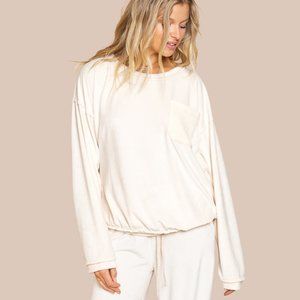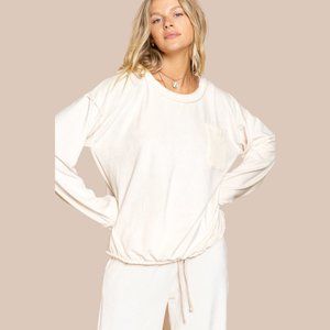 POL Soft Stretchy Velour Cream Beige Jogger Top