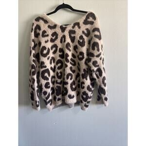POL SoftThick Leopard Knit Sweater-Size small-Fluffy-Oversized Cream/Brown
