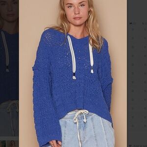 POL “ Stacy 3 “ POL Cable Knit Chenille Sweater with Drawstring Hood 65