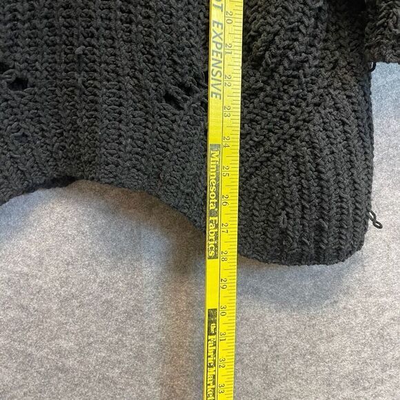 POL Sweater Women's Medium Black Chunky Knit Pullover V Neck Bell Tie Sleeves