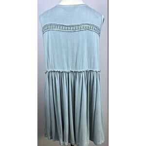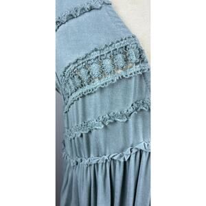 POL Sz M Green Babydoll Boho Gypsy Flowy Crocheted Deep V Slvls Scrapwork Top