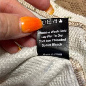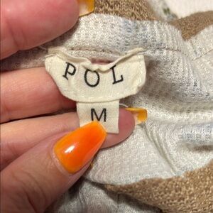 POL Tan and Cream Patchwork Long Sleeve Top with Bell Sleeves - Size M