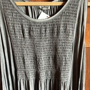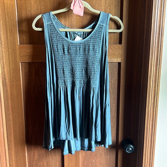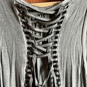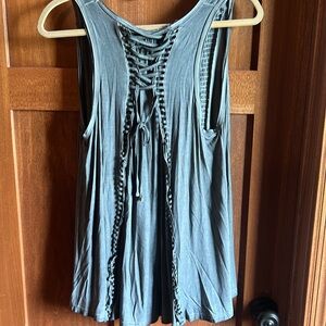 POL size Large tunic tank top. Cute lace up detail in the back. Dark grey vintage wash. In great shape, worn minimally. 22 pit to pit, approximately 28 in length (longer in the back).