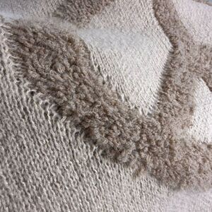Condition: Overall great condition with minimal signs of gentle use. Textured peace sign design has a soft, teddy-like finish. Some yarn loops may show light variation, either by design or from gentle wear — see close-up photo for details