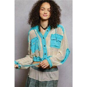 *Add some texture to your wardrobe with this stylish woven button down hooded shirt featuring a drawstring hem. The unique texture adds interest and dimension to this classic button-down style. The hood and drawstring hem offer a casual and laid-back vibe, perfect for everyday wear. Versatile and comfortable, this shirt can be easily dressed up or down to suit any occasion. Pair it with your favorite jeans or shorts for a trendy and effortlessly cool look.