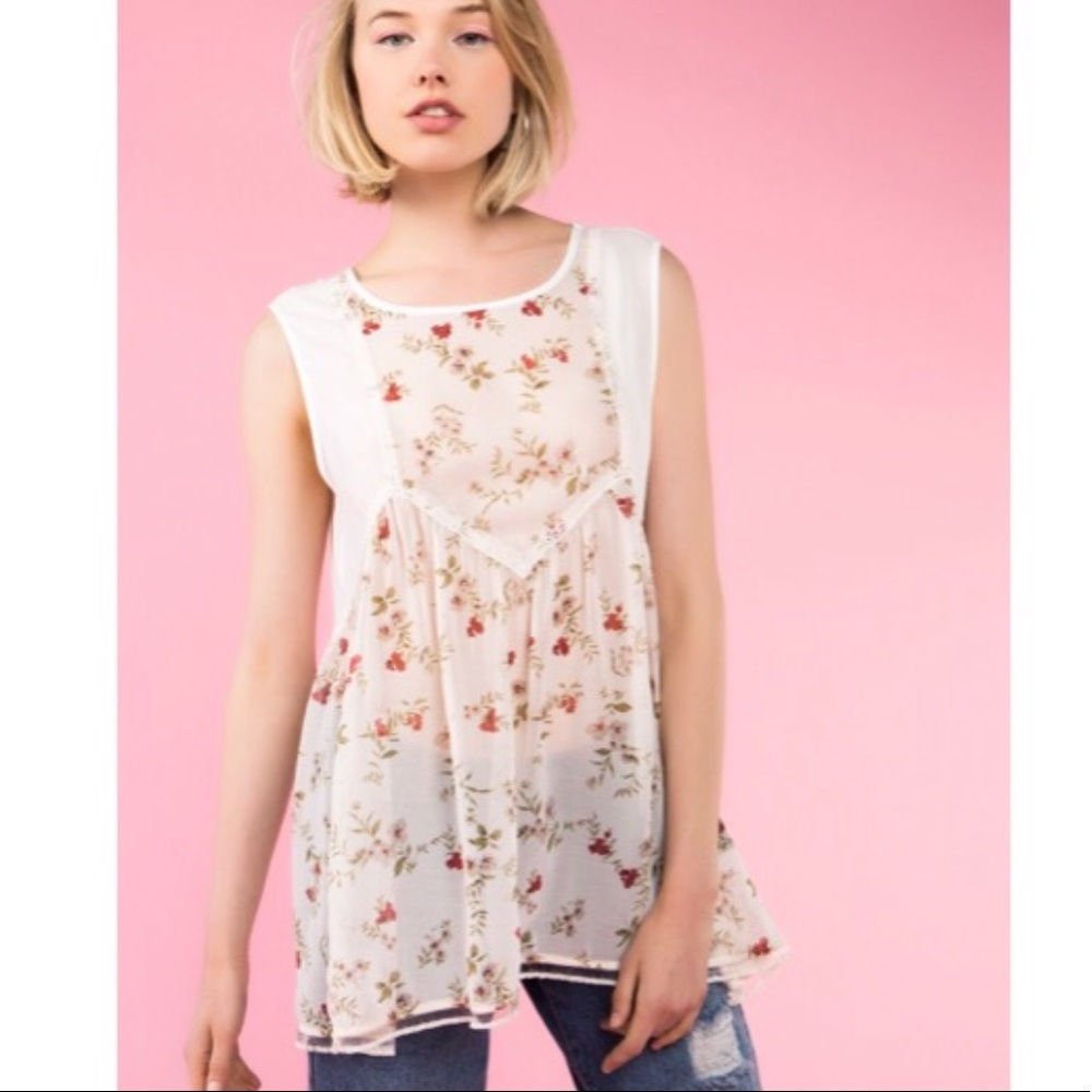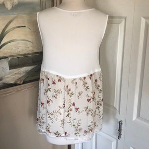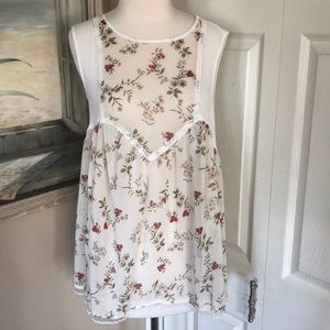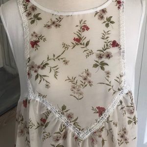 Beautiful sheet floral print sleeveless top with lace details. Like new! Pit to pit: 17” Length: 26.5” I