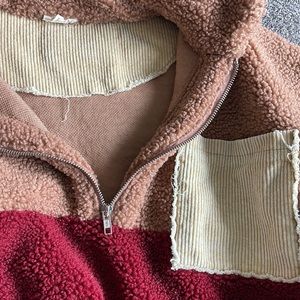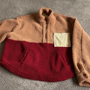 Size large 3/4 zip pull over. 100% poly, oversized fit.