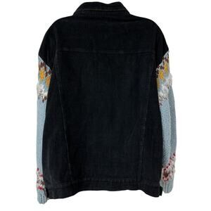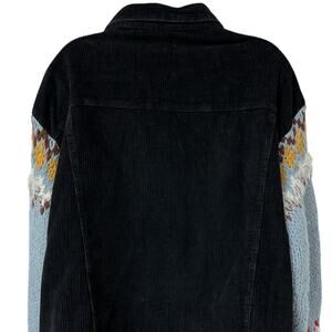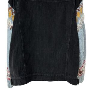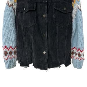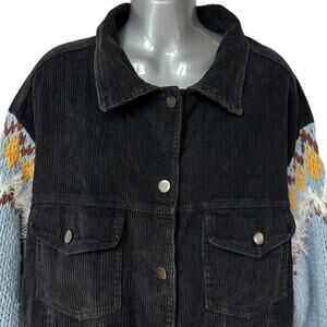 POL Trucker Jacket Black Corduroy Blue Knit Sweater Sleeves Women's Size Medium
