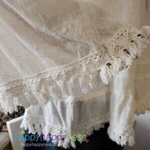 Designed in notched neckline with ruffles long sleeve knit tunic top, oversized fit, fringe edge. Featured in rib and cotton slub. Soft and flowy with pretty fringe edges on bottom and sleeves. Ribbed at the top, and has a very long tie string at the neck.