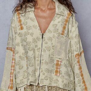 POL VINTAGE PRINT GAUZE ZIP JACKET TOP