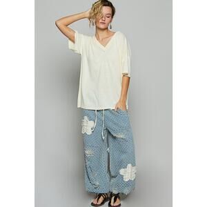POL V-Neckline Short Sleeves Roomy Fit Stone Washed Knit T-Shirt | Lilac