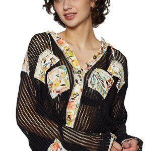 POL Vintage Washed Crochet Hoodie Jacket With Patchwork
