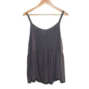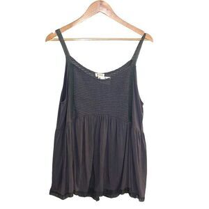 POL Vintage Washed V-neck Sleeveless Lace Trim Thermal Tank Charcoal Size Medium NWT