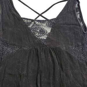 POL Whimsigoth Black Distressed Slip Dress with Lace Cut-Outs Size Small