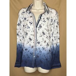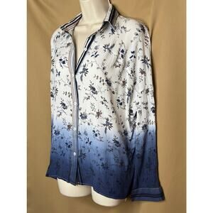 POL White Blue Ombre Floral Button Up Top S NWOT