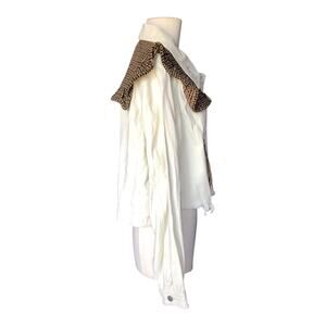 POL White Denim Jacket Ruffle Tweed Collar Frayed Hem Button Front Size Small