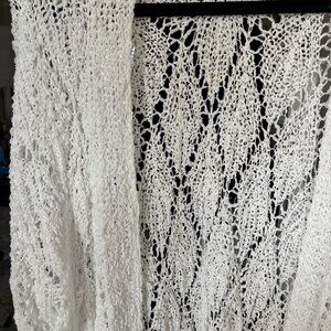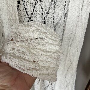 POL White Open Knit Long Cardigan Medium Hippie Beachy Lightweight Boho Vibe