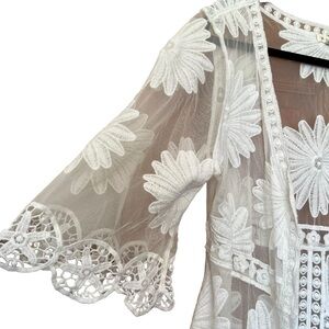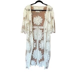 POL White Sheer Mesh Floral Embroidered Long Line Swimsuit Cover Up One