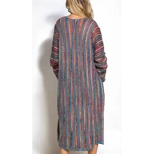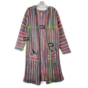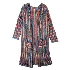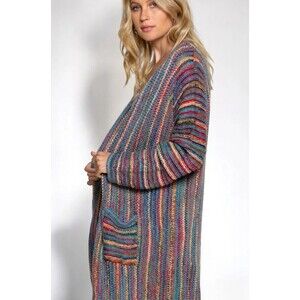 POL Women M Cardigan Chunky Knit Rainbow Stripe Duster Longline Open Front