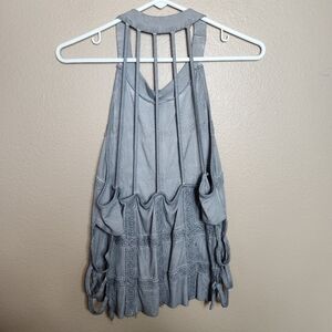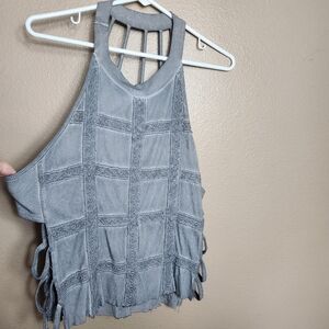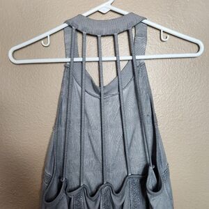 POL Womens Acid Wash Gray Ribbed Strappy Open-Sided High Neck Tank |M|