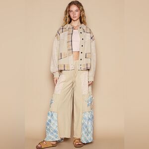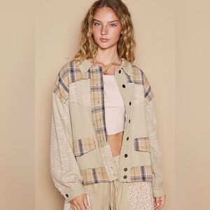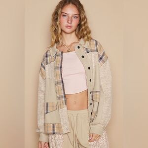 POL Women's Button Down Long Sleeve Sand Shacket NWT