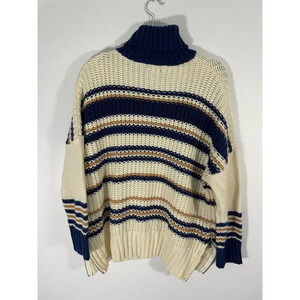 POL Womens Colorblock Oversized Turtleneck Sweater Chunky Knit Size Small