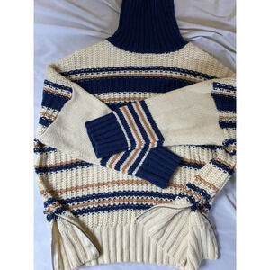 POL chunky knit Colorblock sweater with fold over turtleneck. Zipper sides at the waist. Very oversized- this is from my personal closet and I am a true large, this is a size small and still oversized on me. Please refer to measurements!