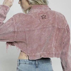 POL Women's Cropped Corduroy Dusty Rose Pink Jacket Small