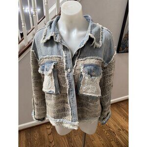 POL Women's Denim Oversized Patchwork Jacket Size Small