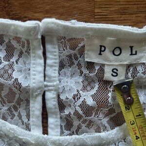 POL Women's Ivory Lace Crop Top Button Back S Tank Sheer Mesh Cropped Bralette