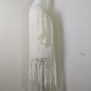 POL Womens Knit Crochet Cardigan W Fringe Sz L, Boho,Hippie,Festival