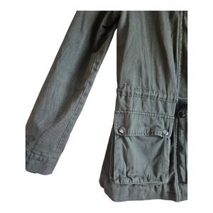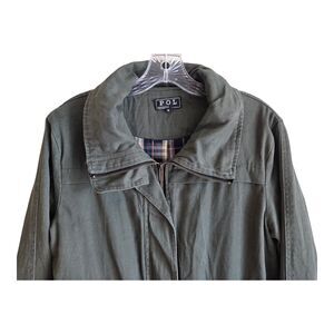 POL Women's Size M Jacket / Chore Coat - Olive Green, Full Zip & Snaps, Drawstring Waist, Pockets, Lined, 100% Cotton