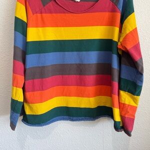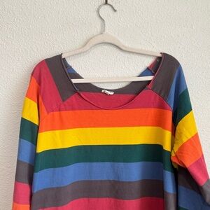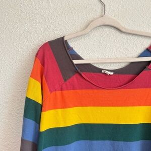 POL Womens Medium Oversized Rainbow Striped Long Sleeve Relaxed Fit Boho Top
