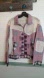 A unique patchwork jacket featuring a red and blue gingham and plaid pattern with crochet knit accents. This long-sleeve jacket has a full zip-up front with collared neckline and functional front pockets, providing a relaxed yet stylish silhouette. The blend of textures and patterns gives it a distinctive, handcrafted look.