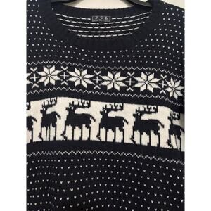 POL Navy Blue Fair Isle Nordic Reindeer Pullover Sweater