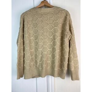 POL Women's Size M Beige Boxy Button Up Boho Cardigan Sweater