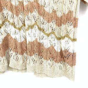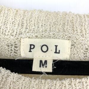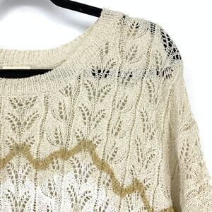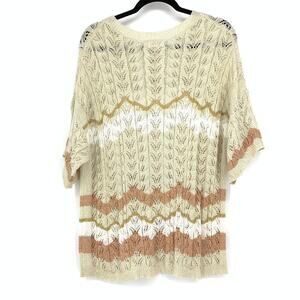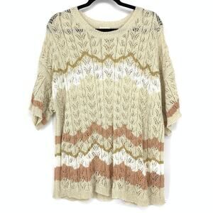 POL Women's Size Medium Crochet Short Sleeve Sweater Striped Beige