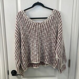 Cozy up in this stylish women's striped sweater. Featuring a chic cream and pink design, it's perfect for any casual outing. Enjoy the comfort and warmth of this must-have piece.