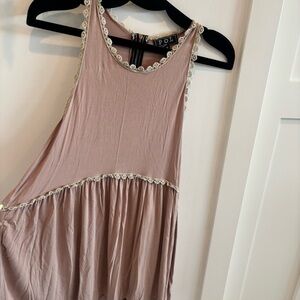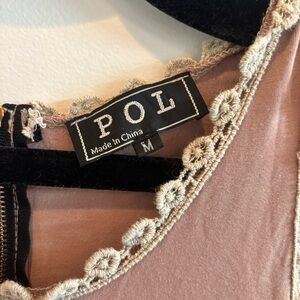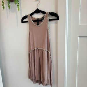 POL Womens Taupe Babydoll Tank Top Cream Crochet Lace Detail Size Medium