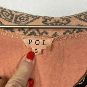 POL Womens Top Mauve & Black S Pullover Vneck Long Sleeves “Love” Printed on Front Geometric Design on Sleeves & Hemline Oversized Soft Unique EUC