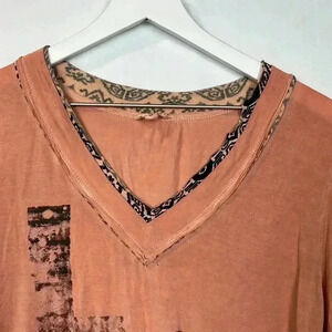 POL Womens Top Mauve & Pink S Vneck “Love” Printed on Front Pullover Boho Soft
