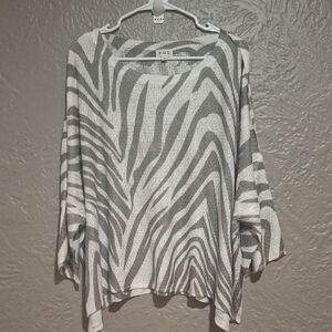 POL Women's Zebra Pattern Sweater - Gray and White Size S