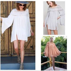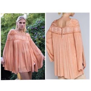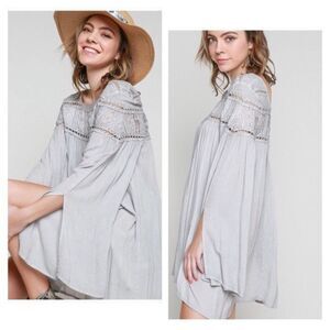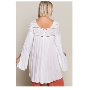 POL Woven Gauze Top Lace Contrast & Bell Sleeves