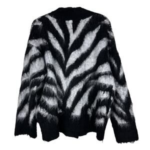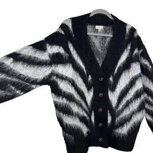 POL Zebra Print Black and White Fuzzy Cardigan Medium
