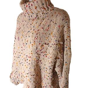 Super soft comfy colorful confetti turtleneck sweater, dropped shoulders, long sleeves with big ribbed cuffs, cropped boxy distressed cozy oversize S measures flat 25" pit to pit 19" long in excellent condition